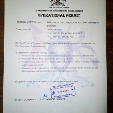 We know that when we ask for help then we need to build trust with you - who may be many thousands of miles away from Uganda. Please be assured that the local authorities do not allow anyone to setup an orphanage without many inspections and official documents. We keep these up to date and can provide copies so you can have confidence that we will use anything you send to us to help house, feed, clothe, and educate the children.